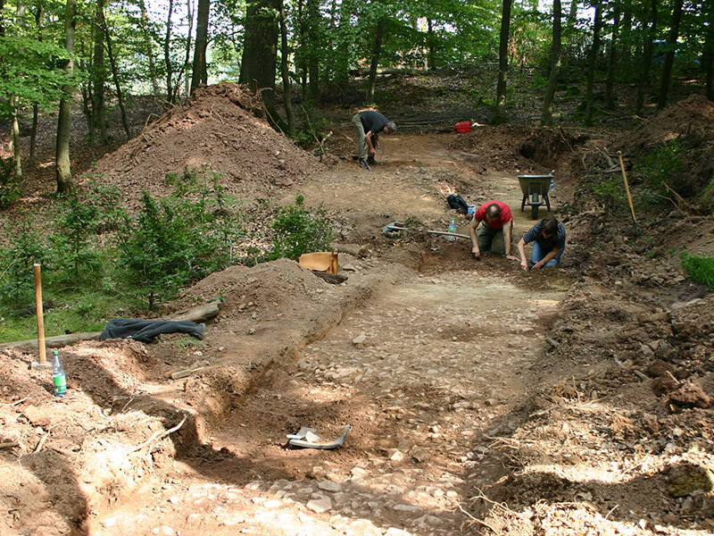 - First photo: the LVR-Amt für Bodendenkmalpflege uncovered the route of the road that ran here in 2009. Photo: I. Ristow, Municipality of Nettersheim