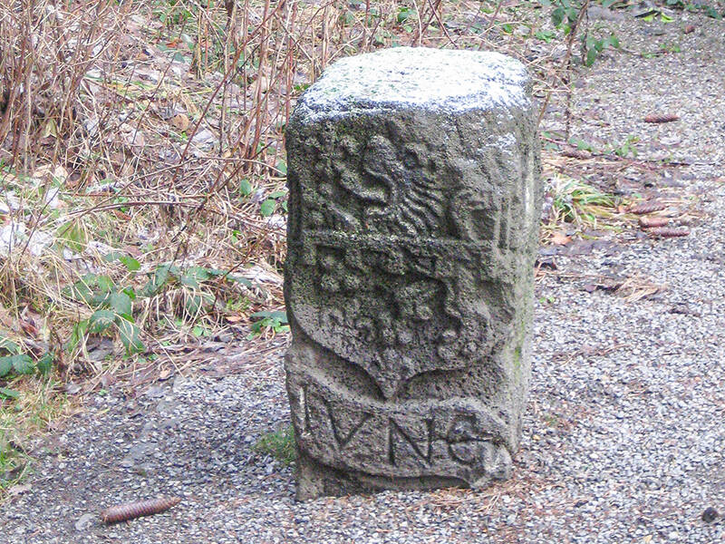 Four territories converged at this point around 500 years ago: Jünkerath, Kronenburg, Schmidtheim, and Blankenheim. The coats of arms and initials of the first three territories are still clearly visible on the basalt lava boundary stone. Much suggests that the side facing the village of Esch formerly bore the coat of arms of the House of Blankenheim.