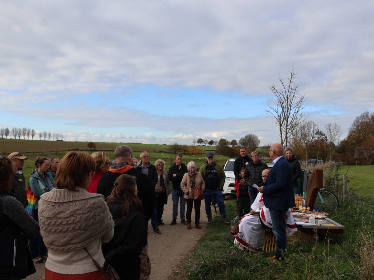 De ingebruikname van een Via Belgica-bank en een archeologisch veldonderzoek waren zaterdag 8 november 2025 de ingrediënten voor een mooie verbinding tussen wetenschap, erfgoed en publiek.