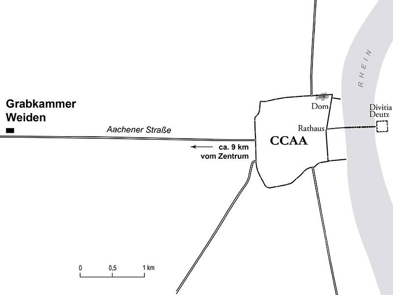 Het Romeinse graf in Keulen-Weiden is het pareltje onder de archeologische monumenten in het Rijnland. De ondergrondse grafkamer, gebouwd van blokken steen die enkele tonnen wegen en afgesloten met een enorm valluik, werd bij toeval ontdekt tijdens bouwwerkzaamheden in 1843. Hij ligt direct aan de Romeinse weg, ongeveer negen kilometer vóór de muren van het Romeinse Keulen.