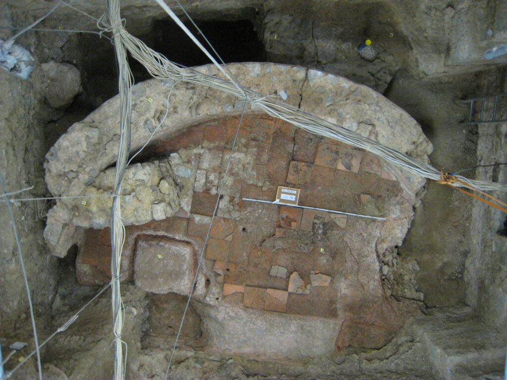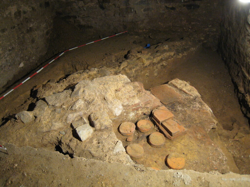In de zuidelijke omgang (a) zijn grote delen van het koudwaterbad (frigidarium), een vroegmiddeleeuwse muur en sporen van een aardbeving uit de Karolingische tijd zichtbaar. In de noordelijke omgang (b) zijn resten te zien van een met een hypocaust verwarmde ruimte en een afwateringskanaal.