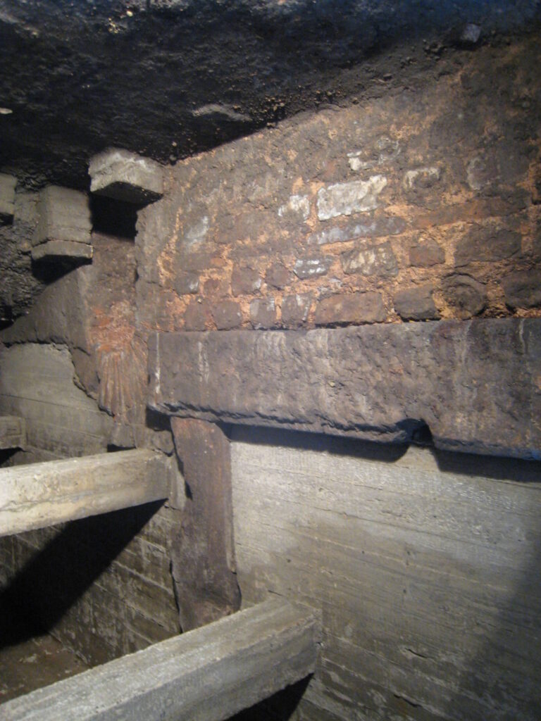 - Foto van archeologisch overblijfsel van het hypocaustum van de Münsterthermen is gemaakt door Stadtarchäologie Aken.