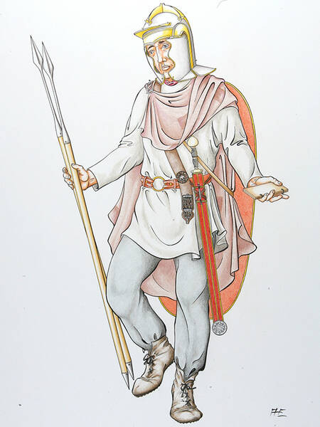 - Tweede foto: Romeinse soldaat (3e eeuw). Bron afbeelding: F. Hilscher-Ehlert, LVR-LandesMuseum Bonn