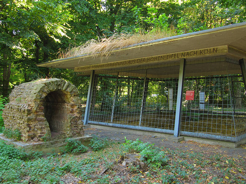 In het huidige stadsgebied van Keulen liep de Romeinse waterleiding op een afstand van gemiddeld 200 meter parallel aan de Via Agrippa. Het 95,4 km lange aquaduct voorzag de inwoners van het Romeinse Keulen dagelijks van 20 miljoen liter vers bronwater uit de Eifel. Tegenwoordig loopt de Berrenrather Straße direct over het tracé van de waterleiding, parallel aan de Luxemburger Straße. Voor huisnr. 436 is de kern van een stuk pilaar nog bewaard gebleven. Deze maakte ooit deel uit van de reeks bogen die hier een lager gelegen vallei overbrugden.
