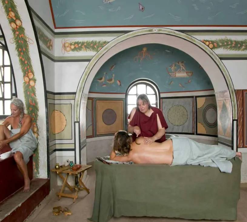 reconstructie Via Belgica en daken Heerlen – Mikko Kriek; reconstructie Heerlen winkelstad – Submedia; Reenactment – Anja Neskens; masseur en kapster – Romeinennu.nl; reconstructie badhuis Heerlen – Submedia; herberg – Chat GPT; reconstructie Romeins boot – Bouwgeschiedenisutrecht.nl