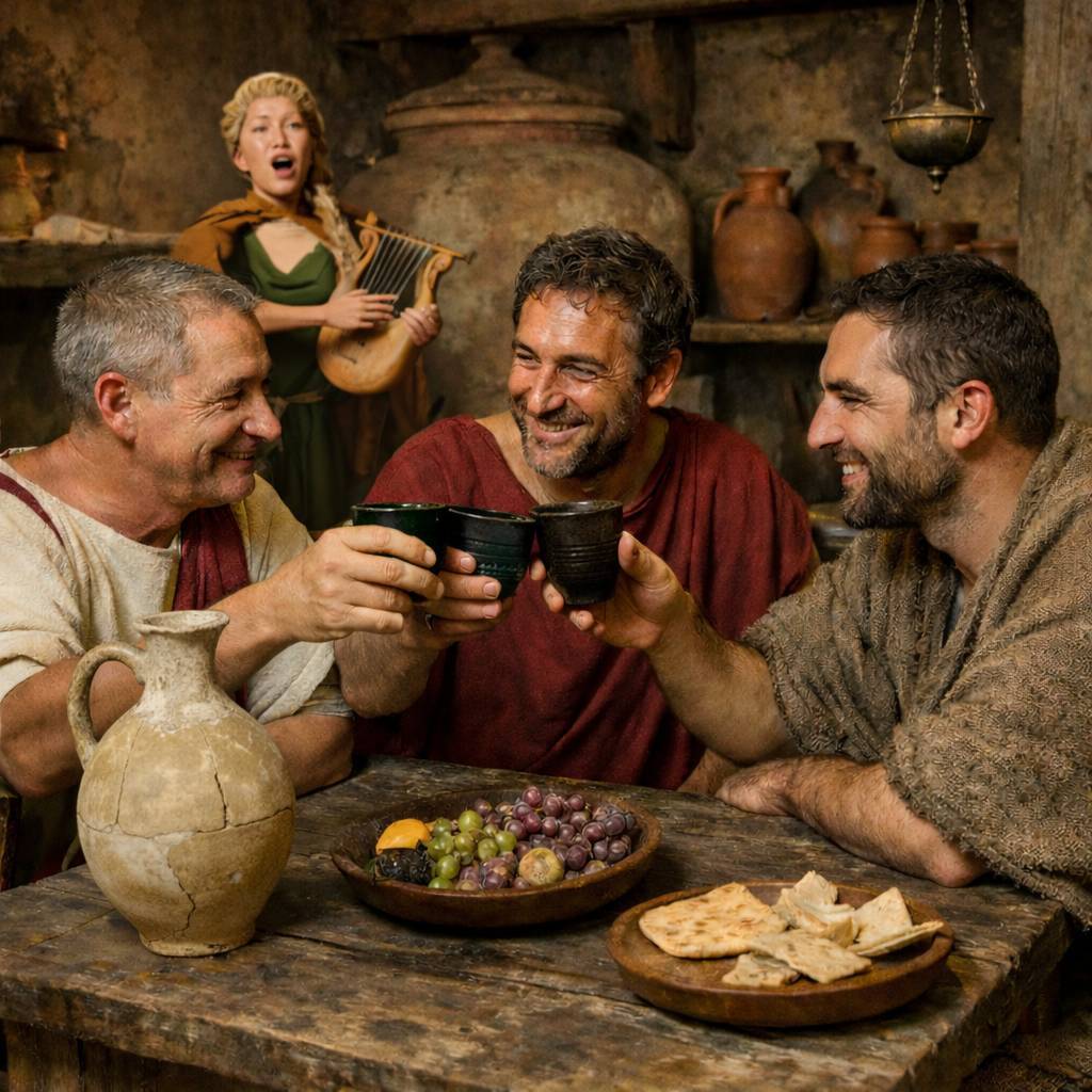 - Romeins heiligdom Maastricht – commons.wikimedia.org; tekening Jupiterzuil hotel Derlon – Titus Panhuysen; AI figuren – Submedia; foto’s offer reenactment – Anja Neskens; Offerscène – Archeon; scène taberna – Chatgpt AI gegenereerd