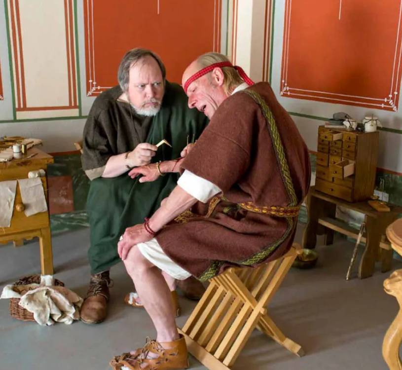 - Reconstructie badhuis, dokter en winkelstad Heerlen – Submedia; compress kruiden – tripadvisor; reconstructie Via Belgica – Mikko Kriek; dokter reliëf – de Standaard; doktersinstrumentarium; Romeinse dokter – Romeinen.nl; godin salus – RMO