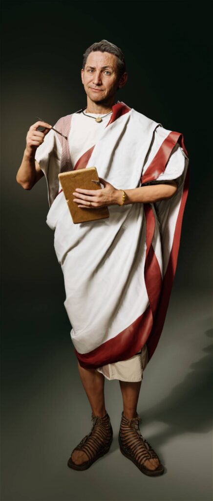 Landschap Bocholtz- wikiloc; ijzertijdboerderijen reconstructie en villa Herkenberg – Mikko Kriek; AI figuren, reconstructie villa en stad – Submedia; reiswagen – Ondernemers Alphen aan de Rijn; scène offer – Archeon; ruiter te paard – ala batavorum; relief reiswagen – Johann Jaritz; jachtscène – coquinaria; offerscène – Anja Neskens