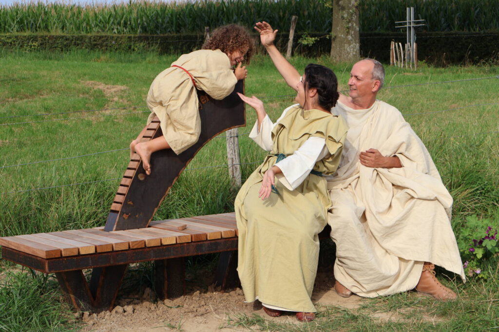 - Landschap Vlengendaal – Beatrice de Fraiture; reconstructie villa Vlengendaal en badscène – Submedia; reconstructie Tumulus en graanscène – Mikko Kriek; tekening graf man van Bocholtz – de Bongard; reenactment – Anja Neskens; taberna – Chatgpt