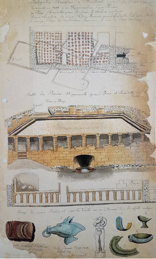 - Reconstructie Romeins Heerlen – Mikko Kriek en Submedia; foto opgraving badhuis Stokstraat Maastricht – geschiedenisextra.nl; opgravingstekening badhuis Stokstraat Maastricht – Wikimedia; reconstructietekening badhuis Stokstraat Maastricht – zichtopmaastricht.nl; reconstructie badscène badhuis Heerlen – Submedia; Handelscène grafsteen Maastricht Museum – Titus Panhuysen