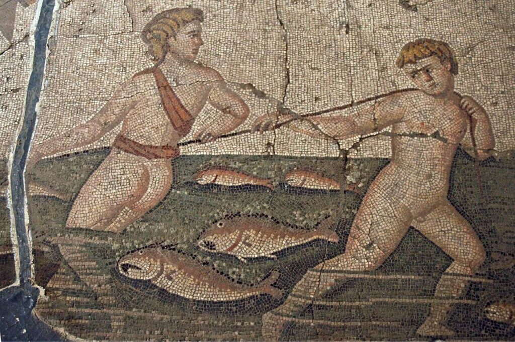 - mozaïek vissers uit Harbiye – wiki; Reconstructie winkelstad Heerlen – Submedia; reconstructie vogelvlucht Heerlen – Mikko Kriek; Mozaïek vissen – Archeologisch Museum Napels; Geuldal – Reizen met Richard; reconstructie Villa Voerendaal – Mikko Kriek