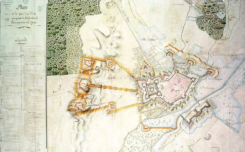 Derde foto: plattegrond van de beoogde maximale uitbreiding van de vesting Jülich onder Frans bewind in 1804. Afbeelding: Staatsbibliotheek van Berlijn