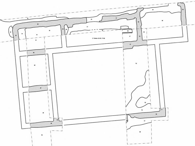 Uit verdere metingen bleek dat er naast het hoofdgebouw ook nog bijgebouwen waren. Deze omvatten meestal een stal en schuur, en vaak ook een bad. Ten westen van het gebouw liep een zijstraat van de Via Belgica weg richting het zuidwesten. Het grondplan van de herberg werd bevestigd door een archeologische opgraving in het voorjaar van 2014.