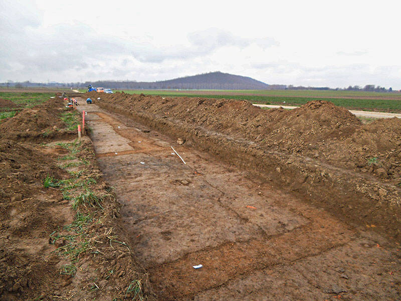 - Tweede foto: een luchtfoto uit 1953 toont een heiligdom langs de Via Belgica. Foto: S. Jenter, LVR Bureau voor Archeologisch Erfgoedbeheer in het Rijnland.