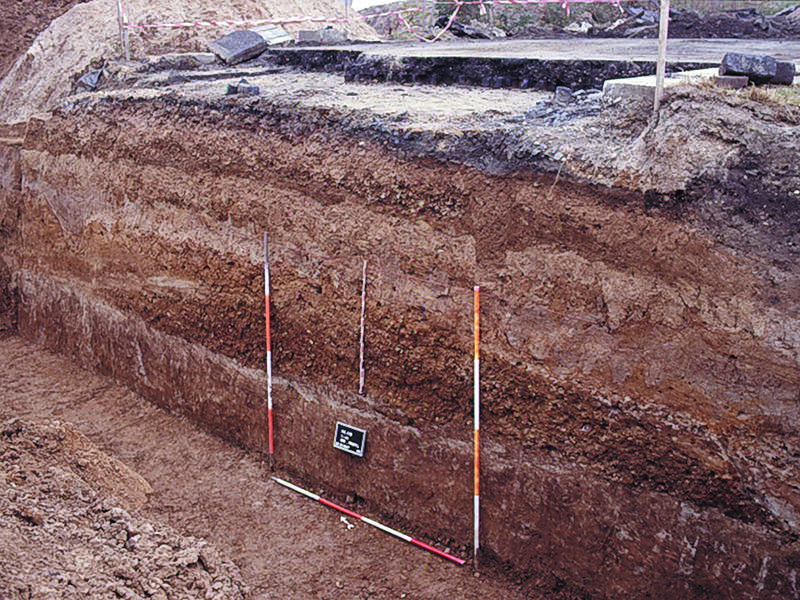 - Eerste foto: dwarsdoorsnede van de Via Belgica. Foto: H. Haarich, LVR Bureau voor Archeologisch Erfgoedbeheer in het Rijnland