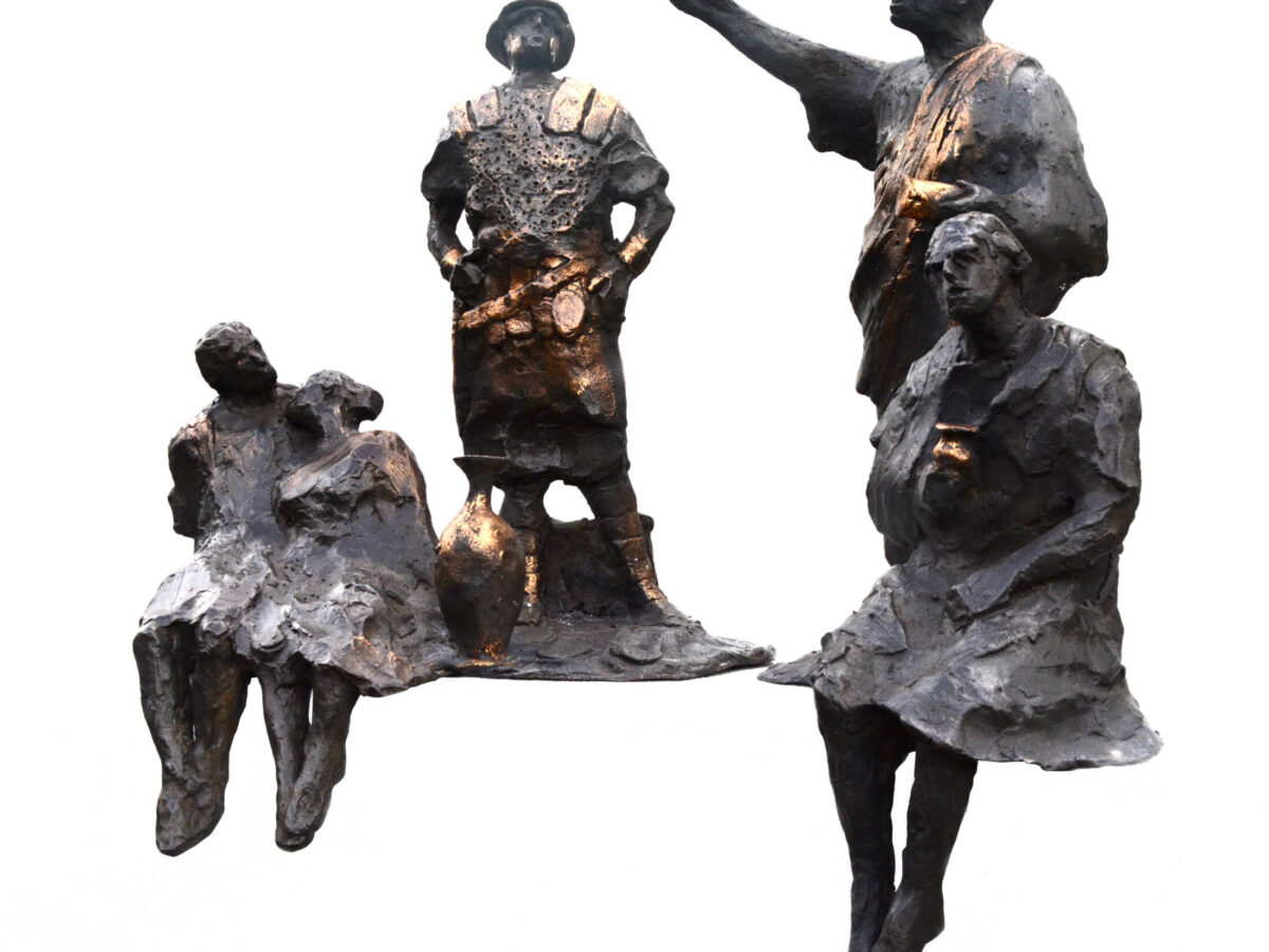 ja, de volgende inspiratie werd gegeven door het kunstwerk van de Koninklijke familie van kunstenaar Arthur Spronken en de ‘Bronzi Dorati’ in het museum in Pergola. En toen bekroop mij de idee om een groep beelden te maken die bij elkaar horen.