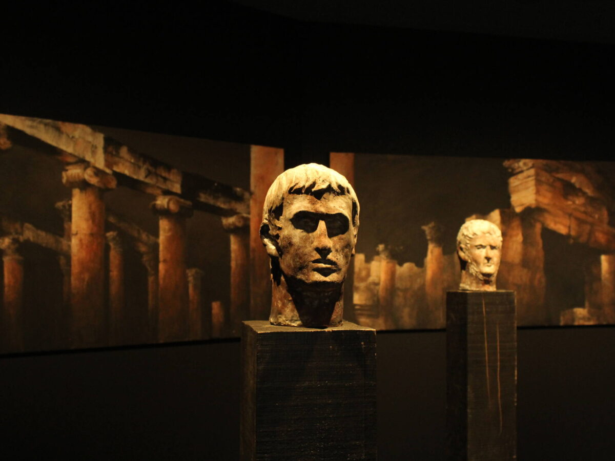 De familie van Spronken is in brons gemaakt, enkel Beatrice is in bladgoud verguld. En dat vond ik fantastisch. Daar begon de idee te groeien. Ik koos 5 Romeinse keizers (Nero, Marcus Aurelius, Hadrianus, Trajanus en Augustus) uit die iets bijzonders gerealiseerd hebben. En de uitschieter is Julius Caesar, die geen keizer is geweest. Daarom kreeg hij een andere vorm en werd belegd met bladgoud.