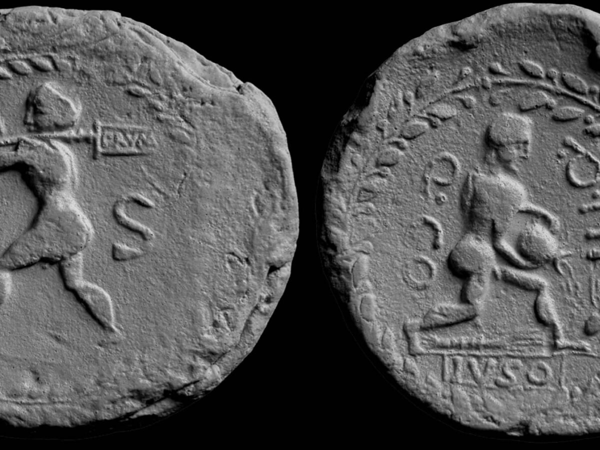 Foto: Loden fiche van stoker met muts, vuurschep en bel (Monetario del Museo Arqueológico Nacional de Madrid, inv. no. 1867/7, foto Clive Stannard)