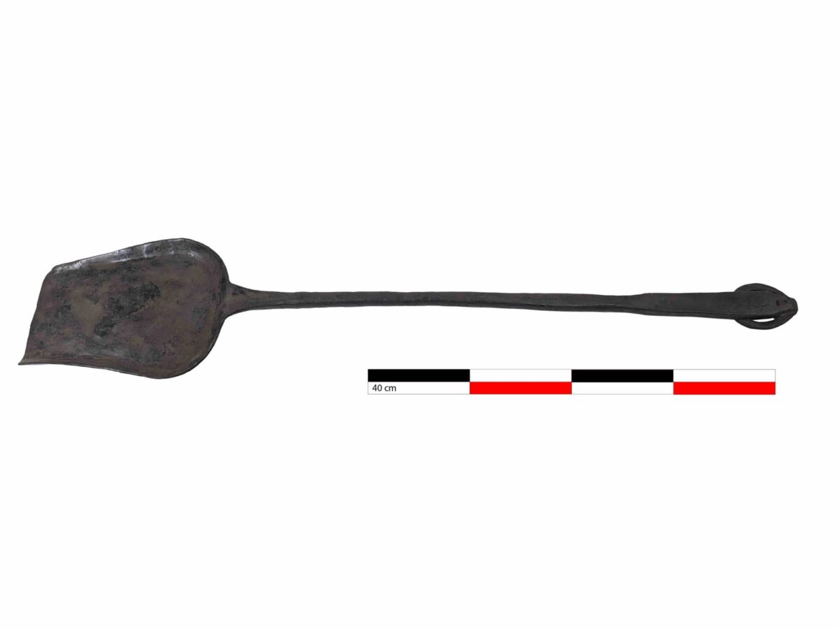 Foto: Maastricht, badhuis Stokstraat, ijzeren vuurschep (foto: Inge Davis, Centre Céramique, Gemeente Maastricht)